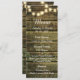 Cardápio de janto de casamento de madeira russa e conjunto de luzes. O menu faz parte de um convite de casamento