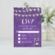 Cartões RSVP de Casamentos Russos Ultra Violet apresentam fundo fotográfico de madeira, cordas de luzes brilhantes e jarro de pedras com uma vela. Misturar e combinar estes cartões RSVP de casamento com a nossa coleção de papelaria de casamento e favores.