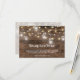 Este belo e elegante convite para janto de recepção e receptáculo RSVP apresenta frascos de pedras, luzes de cordas sobre um fundo de madeira rústica. Este RSVP permite que você ofereça três opções diferentes de refeições ou entradas jantadas. Fácil de personalizar com suas próprias informações de janto de recepção, incluindo tipos de entradas. Por favor, entre em contato comigo com as personalizações adicionais de design que você precisar para o seu belo casamento. Design © por TK Goforward. Para coordenar itens, visite minha coleção de Casamentos Rustic Mason Jar and String Lights e minha loja Zazzle: