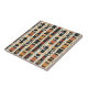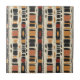 Earthy geometric pattern ceramic tile inspired by tribal mudcloth textiles, featuring hand-painted rectangles, diamonds, and triangles in charcoal black and terracotta on a textured beige background. A warm boho design ideal for rustic décor lovers, artisan style fans, and anyone drawn to earthy geometric aesthetics.