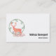 Cartões de visitas com design de aquarela digital. Uma silhueta pastel de renas laranja dentro a coroa de folhas de ervas. Cogumelos e samambaias florestais aos seus pés.