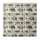 Bold tribal rhino pattern ceramic tile featuring distressed black rhinoceros silhouettes paired with geometric mudcloth-style motifs in warm tan and charcoal on a textured beige background. A rugged, earthy design ideal for safari enthusiasts, boho decor lovers, and wildlife-inspired style fans.