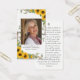 This memorial poem card can be given as a keepsake at a Celebration of Life or funeral service or sent as a special tribute to those who were unable to attend. This card can be personalized with a favorite photo and your choice of prayer or poem. The photograph is for illustrative purposes and can be changed to one of your own.