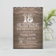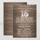 Rustic Surprise 18º Convite de Aniversário com o Fundo Rustic Wood. Luzes de Corda. Retro de Vintagem do País. Aniversário Adulto. Homens ou Mulheres Aniversário. Para mais personalização, clique no botão "Personalizar" e use nossa ferramenta de design para modificar este modelo.