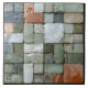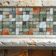This dramatic design features a mosaic of rectangular and square shaped tiles in random sizes and natural earth tones with soft sage green. The variation throughout each tile mimics an authentic aged appearance with scuff marks and warm, well-loved appearance to bring rustic charm to any interior setting. This pattern is part of a coordinated trio that can be mixed and matched for a rich, natural-looking variation across multiple tiles, ideal for a country farm house look as kitchen or bathroom decor. Search ID1187a, b and c to see each of the variations. Note: design contains generative content.