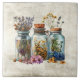 Rustic watercolor graphic design of watercolor dried flowers in jars. Perfect for your country French or cottage farmhouse kitchen. Faux texture background.