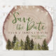Estas lindas rústicas salvas da data, as etiquetas de vinho espumante vão causar uma impressão nos seus convidados e festa de casamento. A maravilhosa design de ilustração com aquarela apresenta uma fatia de madeira rústica, colocada com luzes da cobertura exterior e árvores de floresta com aquarelas em vários tons elegantes de verde caçador, castanho de chocolate escuro e tons de bronzeado. Clique em Editar usando a ferramenta Design para fazer alterações adicionais a este rótulo de vinho espumante.