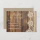 Make it easy for your guests to respond with this rustic wood and lace RSVP card. Featuring a warm wood-textured background accented with delicate lace details, this card blends vintage charm with rustic elegance. Perfect for barn, farmhouse, or outdoor weddings, it coordinates beautifully with your rustic wedding suite. Personalize with response options, names, and wedding date to create a cohesive and stylish set of stationery your guests will love.