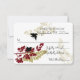 Pássaros russos e folhas bonito em ouro elegante e burgundy, cartão vermelho de resposta para elogiar nossos convites de casamento.