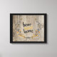 O fundo de madeira, uma coroa de flores-campo e o texto de "lar doce lar" na moderna fonte de dois tons dão a esta charmosa tela esticada uma aparência moderna, mas rústica.