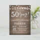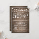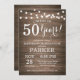 Rustic 50th Aniversário Invitation Wood Background com String Lights. 13 15 16º 18º 20 21rua 30 40º 50º 60º 80 de 70 100º, qualquer idade. Aniversário Adulto. Mulher ou Festa de aniversário masculina. Para mais personalização, clique no botão "Personalizar" e use nossa ferramenta de design para modificar este modelo.