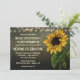 A Corda Rústica Ilumina Convites de Casamento de Girassol - apresenta um fundo rústico com luzes de cordas e um girassol. O texto apresenta uma fonte rústica gravada como fonte para nomes e comemorações de casamento.