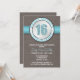 Azul aqua azul personalizado 16 (16) marco Aniversário Convites com ilustração brilhante impressa para o "16" em um design emblema "XTEEN CELEBRATION", sobre uma imagem de textura de canvas de cinza escura russa.