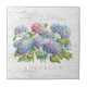 Se você ama hídrangas, você certamente vai gostar da adorável arte floral neste azulejo. Hídricas florescentes são mostradas em tons deliciosos, de rosa a azul a lavanda, com um fundo de textura de conselho de madeira. Personalize os dois primeiros nomes acima e o sobrenome abaixo para você.