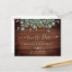 Salve A Data! Anuncie o seu casamento a amigos e familiares com estes cartões salve a data de madeira rústica e eucalipto. Estes cartões de convite para casamento têm uma opção de envelope. Personalizar com nomes, data do casamento, localização. Adicione qualquer outra informação na parte de trás. Esse casamento único e verde salvando as cartas vai causar uma impressão duradoura, seus hóspedes vão se certificar de salvar a data! COPYRIGHT © 2020 Judy Burrows, Black Dog Art - Todos Os Direitos Reservados. Rústico Madeira Verde Casamento Orçamento Salva Data