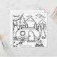 Cartão de cor bonito com um tema de acampamento. Uma fogueira e um acampamento RV na floresta.