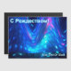 Uma interpretação fractal, cor-de-rosa e azul, das Luzes do Norte refletida na superfície do mar. Qanaaq é um povoado na Groenlândia norte. O texto cirílico (russo) com a leitura de "S Rozhdestvom" (С Р д е о ж с т вом- Uma saudação de Natal russa) aparece em azul e branco brilhantes. Adicione seu próprio texto adicional.