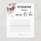 Sabedoria Floral para a Mãe ser Jogo do Chá de fraldas Adicione um pedido aos seus convidados para escrevendo algumas palavras sobre Sabedoria para que a Mãe seja um cartão, uma atividade divertida mas envolvente que irá deliciar os seus convidados! Neste animado jogo/atividade, os hóspedes irão escrever algo que aprendem sobre a maternidade ou algo da sua experiência com a beleza dos anêmonos. Com ilustração floral, nossos cartões de jogo trazem uma explosão de cor e diversão para o seu evento. A alegre ameixa e os sotaques brancos e as fontes divertidas fazem deste jogo uma adição deliciosa a qualquer decor de chá de fraldas. Com a nossa Sabedoria Floral para o Cartão de Chá de fraldas da Mãe, você pode adicionar um traço de palestra engraçada e um toque de entusiasmo à sua celebração, fazer-o um evento memorável para a futura mãe e todos os seus convidados.