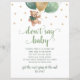 Um Urso de Costura de Água, Chá de fraldas Verde e Balões Dourados, não diga Poster de Jogo de Bebê. Design apresenta um esquema de texto elegante e moderno. Para fazer alterações avançadas, selecione a opção "Clique para personalizar mais".