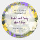 Sabonete personalizado, adesivos para bolos ou artesanato com letras roxas e pretas em lindas flores roxas, amarelas e azuis de violeta e pansy em flor.