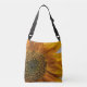 Um sinal de verão. Um girassol florescente adora esta bolsa de tote. Use-o de mãos livres. Libere as mãos para segurar sua câmera ou um sorvete.