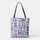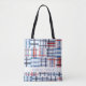 Saco de Tote de Madras Vermelhas, Brancas e Azuis