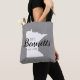 Saco de tote moderno da fazenda personalizado com seu nome de família dentro do mapa do estado. Fundo de textura da canvas de burlap faux (note que as bolsas não são feitas de material de burlap). Clique no botão Personalizar para adicionar seu próprio texto e criar seu próprio texto exclusivo de um tipo de design!