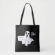 Esta bolsa de tote é mostrada com uma impressão de fantasma do Halloween. Personalize este item ou comprar como está. Imagem do stock vecteezy.com
