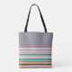 Cor do carregar com confiança usando este saco de tote com padrão de distribuição retrorreflectora na moda. Projetado com um layout limpo de riscas ousadas e inspiradas retroativamente na mostarda, no chalé, no cor-de-rosa, na burgundy e nos neutrais suaves em um fundo de cinza liso, esta bolsa traz um pop moderno ao essencial do dia a dia. Perfeito para corridas de mercearia, livros de biblioteca, ou excursões casuais, é funcional e avançado na moda. Durável, leve e fácil de dobrar - um imperativo para qualquer um que ama design minimalista com uma reviravolta colorida.