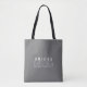 Esta bolsa de tote para damas de honra apresenta um design elegante e minimalista usando uma fonte sans serif negrito e contorno na frente e uma fonte serifada complementar para o nome. Adicione o nome facilmente clicando em personalizar e para alterar a cor do texto ou do fundo, basta clicar em "personalizar mais" para ir para a ferramenta de design.