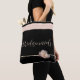 Esta bolsa tote para madrinhas é mostrada em preto com listras bege neutro acentuadas no topo e uma peônia rosa pálido solitária na terceira listra neutra a partir de cima. "Madrinhas" escrito em uma fonte divertida e brincalhona. Design na frente e no verso. Personalize este item ou compre como mostrado. Se personalizar, lembre-se de personalizar ambos os lados!