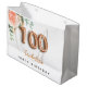 Sacola Para Presentes Grande 100.o aniversário do eucalipto dourado rosa floral