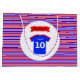 Esta bolsa de presente de 10 anos é muito colorida, e excelente para rapazes e raparigas. Adicione o nome da aniversariante ou garoto para personalizá-lo. A faixa vermelha de aniversário declara "BIRTHDAY" em letras maiúsculas negras - ou isto também pode ser editado. As listras vermelhas e azuis correspondem ao papel de tecido listrado também disponível na coleção.