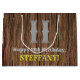 Este olhar ocidental e o país inspiraram o aniversário, o design de um saco-presente com tema apresenta um grande número de aparência rústica "11", a mensagem "Happy 11 Birthday", um nome editável, e um padrão de aparência inspirado em faux/imitação de grãos de madeira. Um saco de presente de aniversário personalizado como este pode ser divertido de usar ao embrulhar presentes que estão sendo dados em comemoração do décimo primeiro aniversário de alguém. [~Z0000470]