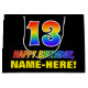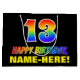Este design de presente de aniversário divertido, colorido e alegre apresenta um grande número "13" e a mensagem "FELIZ ANIVERSÁRIO", ambos coloridos com um padrão inspirado no gradiente do espectro do arco-íris, juntamente com um nome de destinatário editável amarelo ousado. O fundo é preto colorido. Um presente de aniversário divertido como este pode ser usado para embrulhar um presente ou presente dado a alguém que comemora seu décimo terceiro aniversário. [~Z0000477]
