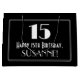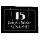 Esta aparência vintage O estilo "Roaring '20s" inspirou o design de um saco-presente com tema de aniversário que apresenta um grande deco de arte com o número inspirado "15", a mensagem "Happy 15 Birthday", um nome personalizado e um padrão de borda que consiste em linhas finas. O fundo é preto colorido. Um saco de presentes como este pode ser usado quando embrulhar presentes é dado a alguém em comemoração de seu décimo quinto aniversário. [~Z0000496]