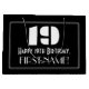 Esta aparência do estilo vintage 1920/1930 inspirou o aniversário do temed giftbag design apresenta um grande estilo de deco inspirado no número "19", a mensagem "Feliz 19 de Aniversário", um nome personalizado e um padrão de borda consistindo em linhas finas. O fundo é preto colorido. Um saco de presentes como este pode ser usado ao embrulhar presentes que estão sendo dados a alguém em comemoração do seu décimo nono aniversário. [~Z0000495]