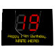 Este design de presente de aniversário geeky apresenta um grande número "19" com um visual inspirado em sete segmentos vermelhos, juntamente com a mensagem "Happy 19th Birthday", e um nome editável em texto amarelo geeky, em um fundo preto colorido. Sacos de presentes editáveis como este podem ser usados ao embrulhar presentes ou presentes sendo dados para celebrar o 19º aniversário de alguém. [~Z0000389]