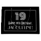 Esta aparência vintage A aparência do Roaring '20's inspirou o design de um saco-presente de aniversário com uma grande aparência de deco inspirada no número "19", a mensagem "Feliz 19 de Aniversário", um nome personalizado e um padrão de borda consistindo em linhas finas. O fundo é preto colorido. Um saco de presente temático de aniversário como este pode ser usado para embrulhar um presente ou presente para celebrar o 19.º aniversário de alguém. [~Z0000497]