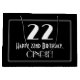 Este visual vintage estilo Roaring '20s inspirou um design de presente de aniversário que apresenta um grande estilo de deco inspirado no número "22", a mensagem "Happy 22nd Birthday", um nome personalizável e um padrão de borda que consiste em linhas finas. O fundo é preto colorido. Um saco de presente temático de aniversário como este pode ser usado para embrulhar um presente ou presente para celebrar o vigésimo segundo aniversário de alguém. [~Z0000496]