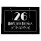 Esta aparência de 1920/1930s inspirou vintage parecendo um saco de presente com tema de aniversário design apresenta um grande deco de arte parece inspirado número "26", a mensagem "Feliz 26 de aniversário", um nome editável e um padrão de borda consistindo em linhas finas. Também tem um fundo de cor preta. Um saco de presente temático de aniversário como este poderia ser usado para embrulhar um presente ou presente para celebrar o vigésimo sexto aniversário de alguém. [~Z0000496]