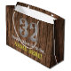 Este país inspirou e oeste o design de sacola de presente com tema de aniversário apresenta um grande número de aparência rústica "32", a mensagem "Happy 32nd Birthday", um nome personalizável, e um padrão de aparência inspirado em faux/imitação de grãos de madeira. Uma bolsa de presente de aniversário personalizada como esta pode ser uma forma divertida de embrulhar um presente que está a ser dado em comemoração do trinta e dois anos de alguém. [~Z0000470]