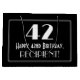 Esta aparência vintage, Roaring Twenties, parece inspirada no aniversário, temed giftbag design, apresenta um grande estilo de deco inspirado no número "42", a mensagem "Happy 42nd Birthday", um nome editável e um padrão de borda consistindo em linhas finas. Também tem um fundo de cor preta. Um saco de presente temático de aniversário como este pode ser usado para embrulhar um presente ou presente para alguém que comemora seu quarenta e segundo aniversário. [~Z0000496]