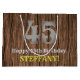 Este design de bolsa de presente inspirado no ocidente e inspirado no país apresenta um grande número de aparência rústica "45", a mensagem "Feliz 45.º Aniversário", um nome personalizado e um fundo de padrão de aparência falsa/imitação de grãos de madeira. Uma bolsa de presente de aniversário personalizada como esta pode ser uma forma divertida de embrulhar um presente ou presente que está a ser dado em comemoração do quarenta e cinco anos de alguém. [~Z0000470]