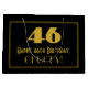 Esta aparência de vintage com 1920 de 1930 inspirou o design de bolsa de presente temático de aniversário com um grande estilo de deco inspirado no número "46", a mensagem "Feliz 46 aniversário", um nome personalizável e um padrão de borda consistindo em linhas finas. Ele apresenta um fundo de cor preta. Uma bolsa de presente como esta poderia ser usada ao embrulhar um presente de aniversário ou um presente dado a alguém que comemora seu quarenta e sexto aniversário. [~Z0000501]
