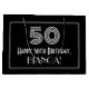 Este 1920 de 1930 parece inspirado no estilo vintage do aniversário temed giftbag design apresenta um grande número de deco de arte inspirado no número "50", a mensagem "Feliz 50º aniversário", um nome editável e um padrão de borda consistindo em linhas finas. Também tem um fundo de cor preta. Uma bolsa de presentes como esta pode ser usada ao embrulhar presentes que estão sendo dados a alguém em comemoração de seu quinquagésimo aniversário. [~Z0000497]