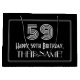 Esta aparência vintage, Roaring Twenties, parece inspirada na design de um saco-presente com tema de aniversário que apresenta um grande deco de arte, parece inspirado número "59", a mensagem "Feliz 59º Aniversário", um nome personalizado e um padrão de borda que consiste em linhas finas. Ele também apresenta um fundo de cor preta. Um saco de presente temático de aniversário como este pode ser usado para embrulhar um presente ou presente para celebrar o cinquenta nono aniversário de alguém. [~Z0000497]
