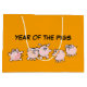 Imagens engraçadas de pequenos porcos cor-de-rosa (rindo, dançando, correndo, sorrindo e muito mais) em fundo transparente com textos personalizáveis: Ano dos PIGS e 2019. Você pode mover todos os porcos facilmente, alterar a cor de fundo, mover e alterar o fundo e o texto da imagem do ouro (fonte, tamanho, cor e posição) clicando no botão personalizar. Design no saco-presente grande com fundo amarelo alaranjado. Outros modelos estão disponíveis com ilustrações engraçadas de desenhos animados. Cartão de saudação, produtos caseiros, vestuário, acessórios, poster, faixa, decalque de parede, caneca e muito mais... Perfeito para o Ano Novo Chinês do Porco 2019 ou Aniversário (nascer pessoas no ano do Porco). — "O Porco (豬) é o décimo segundo e o último sinal das Sucursais Terrestres (亥). No ciclo Sexagenário contínuo, a cada 12 anos corresponde a Hai, e é comumente chamado "Ano do Porco" (年 豬). Há cinco tipos de porcos, com o nome dos elementos chineses. Em ordem, são: Metal, Água, Madeira, Fogo e Terra. No zodíaco japonês e no zodíaco tibetano, o porco é substituído pelo javali[1]. No zodíaco Dai, o Porco é substituído pelo elefante. No gurung zodiac, o porco é substituído pelo veado. (...) O nascer Pessoas dentro destas gamas de datas pode ser considerado nascer no "Ano do Porco", ostentando simultaneamente o seguinte sinal elementar: 10 de fevereiro de 1923 - 29 de Janeiro de 1924 = Water Pig, 4 de fevereiro de 1935 - 23 de Janeiro de 1936 = Wood Pig, 22 947 - 9 de fevereiro de 1948 = Fire Pig, 8 de fevereiro de 1959 - 27 de Janeiro de 1960 = Earth Pig, 27 de Janeiro de 1971 - 14 de fevereiro de 1972 = Metal Pig, 13 de fevereiro de 1983 - 1 fevereiro de 1894 = Water Pig 31 de Janeiro de 1995 - 18 de fevereiro de 1996 = Suíno de Madeira, 18 de fevereiro de 2007 - 6 de fevereiro de 2008 = Suíno de Fogo, 5 de fevereiro de 2019 - 24 de Janeiro de 2020 = Porco de Terra, 23 de Janeiro de 20000 032 = Metal Pig (...)" Wikipedia
