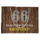 Este design de presente de aparência americana do Velho Oeste e de aparência de campo apresenta um grande número de aparência rústica "66", a mensagem "Feliz 66.º Aniversário", um nome editável, e um padrão de aparência inspirado em faux/imitação de grãos de madeira. Um saco de presente de aniversário personalizável como este pode ser divertido de usar ao embrulhar presentes ou presentes sendo dados em comemoração do sexagésimo sexto aniversário de alguém. [~Z0000470]