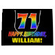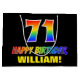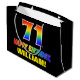Este design de bolsa de presente colorida, alegre e divertida com tema de aniversário apresenta um grande número de "71" e a mensagem "FELIZ BIRTHDAY", ambos tendo um gradiente do espectro do arco-íris inspirado na coloração do padrão, juntamente com um nome ousado de destinatário personalizado amarelo. O fundo é preto colorido. Uma bolsa de presente divertida como esta pode ser usada quando se dá um presente ou presente em honra dos setenta e primeiros anos de alguém. [~Z0000477]